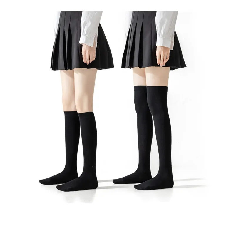 색상:블랙, 1팩 (오버 니 삭스 48cm + 기장 추가 종아리 양말 38cm)