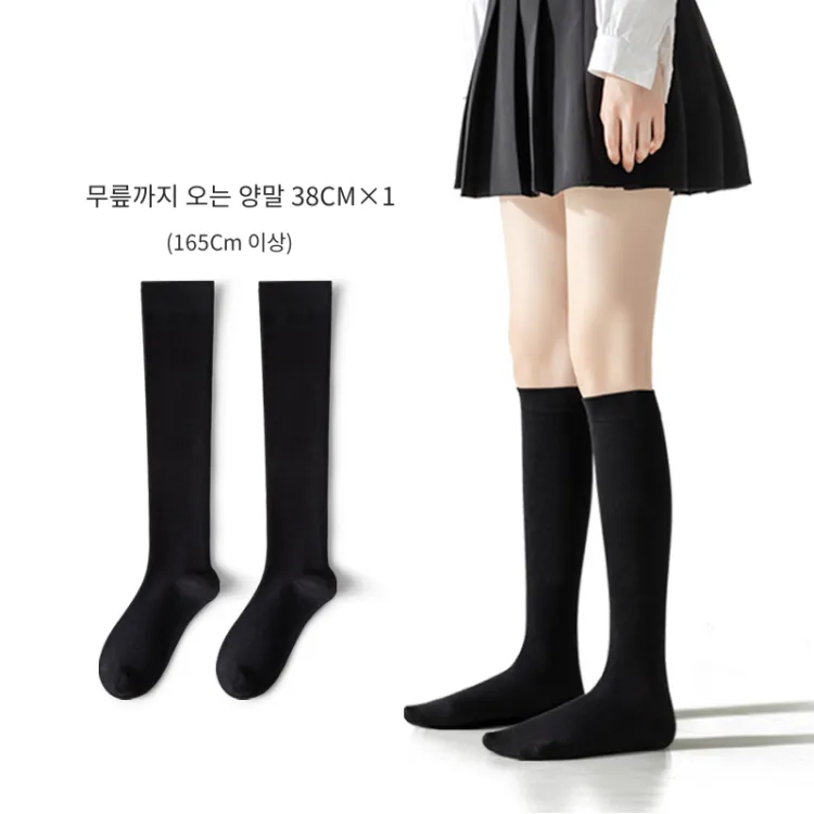 [무릎-길이 양말 38cm] 블랙 1쌍
