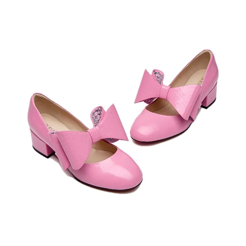 SHOESZOOO 청키 힐 메리제인 슈즈 여성 걸리시 핑크