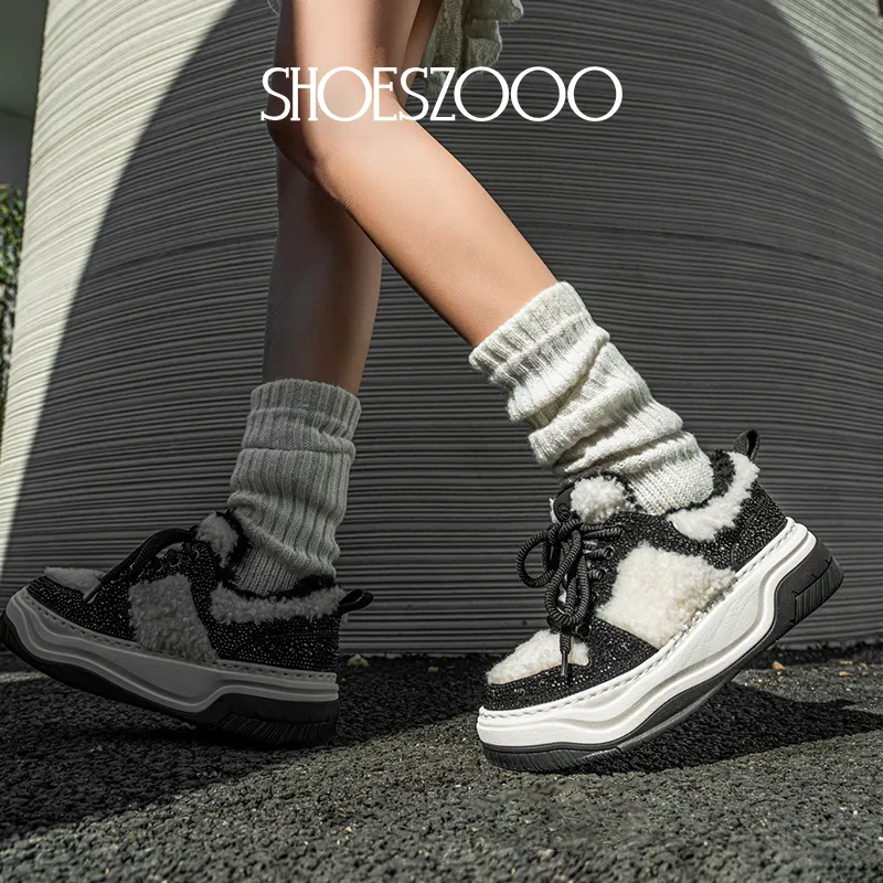 SHOESZOOO 퍼지 스케이트보드화 보온 내마모성 미끄럼 방지 로우탑 캐주얼화 여성 블랙 화이트