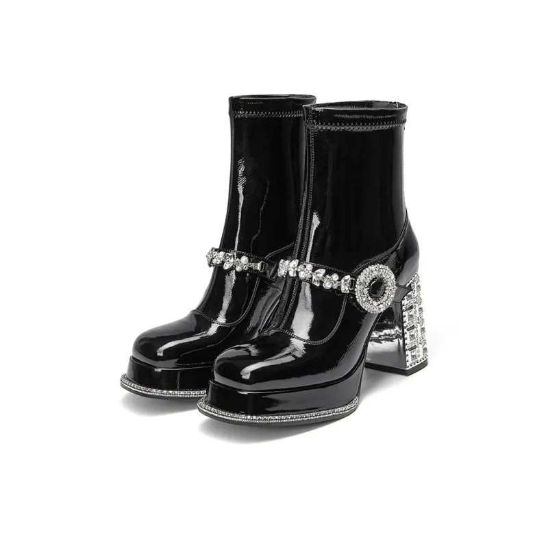 SHOESZOOO 하이 힐 부츠 앵클 부츠 10CM 여성 - POIZON