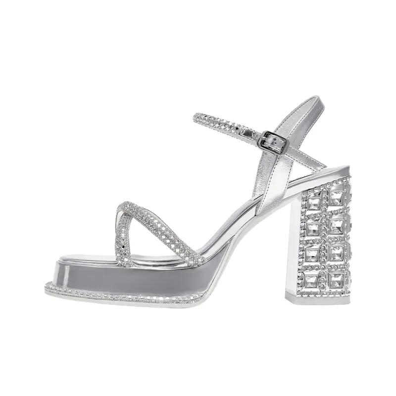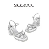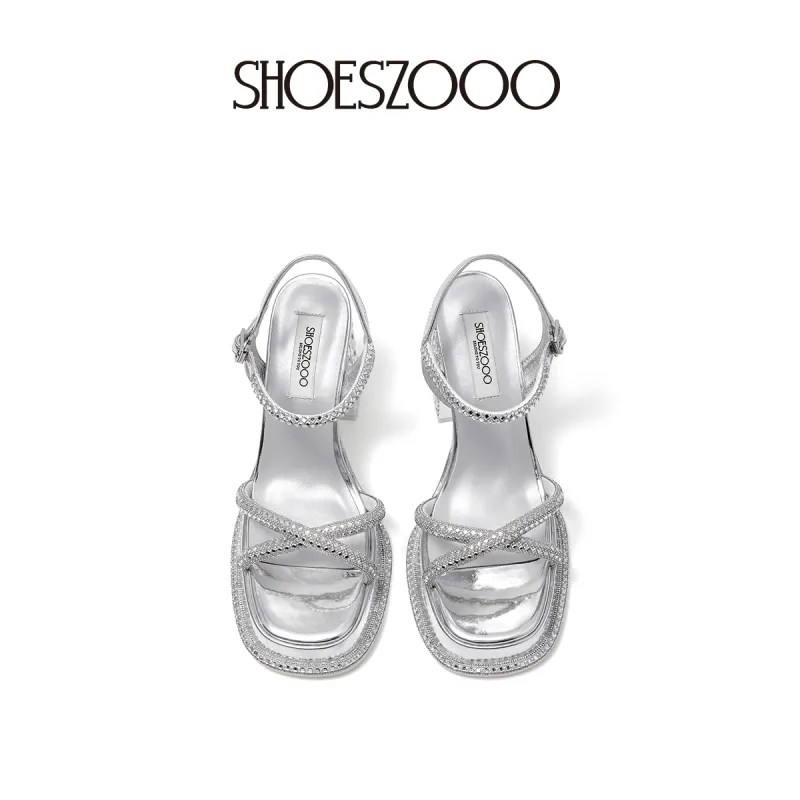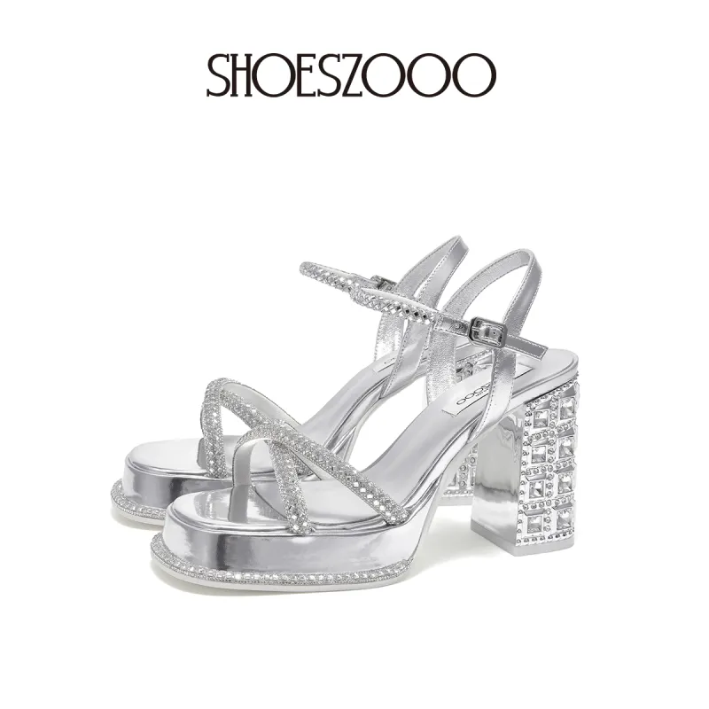 SHOESZOOO 일자 스트랩 샌들 여성 길디드 Secret 실버 - POIZON