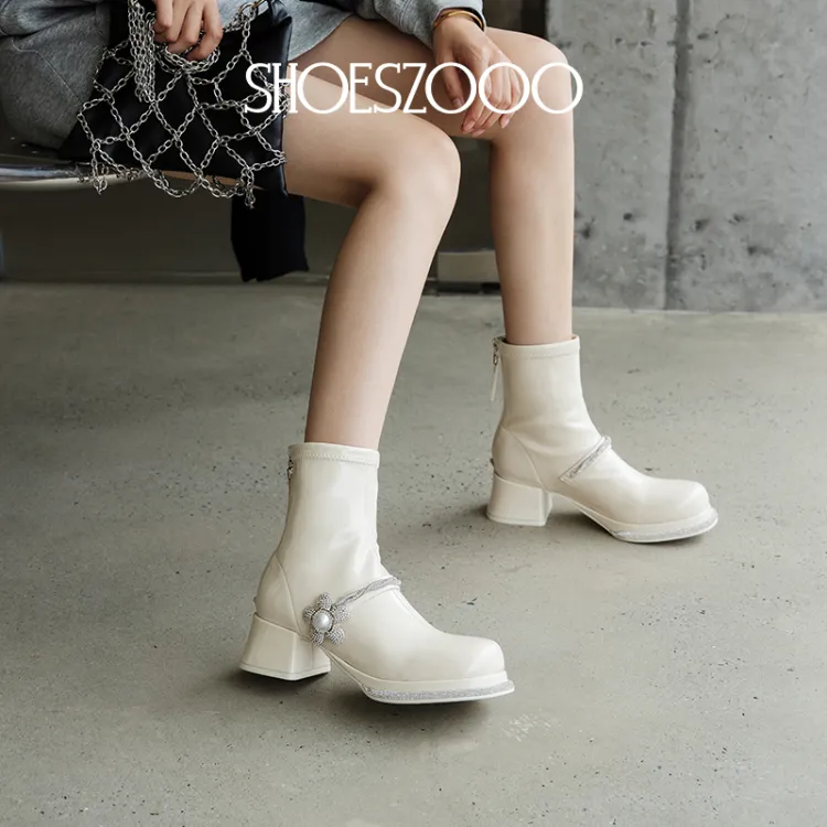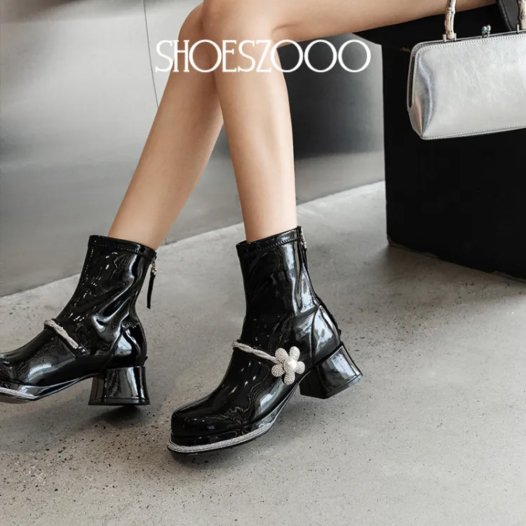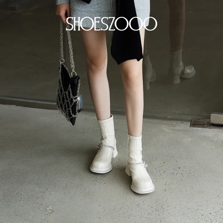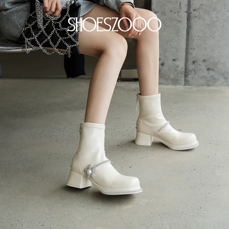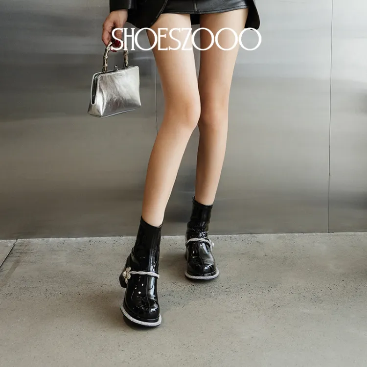 SHOESZOOO <브랜드_1>e 스타일 스틸레토 힐 앵클 부츠 5CM 여성 - POIZON