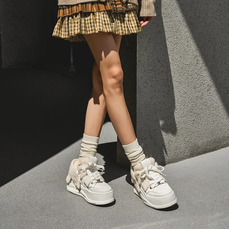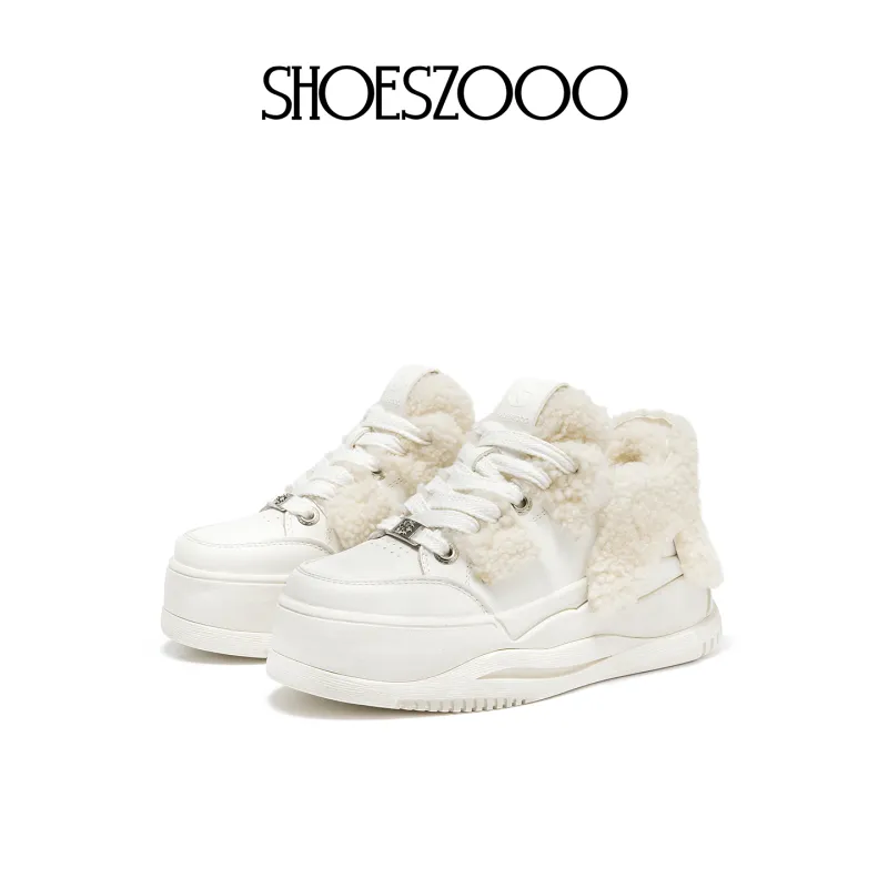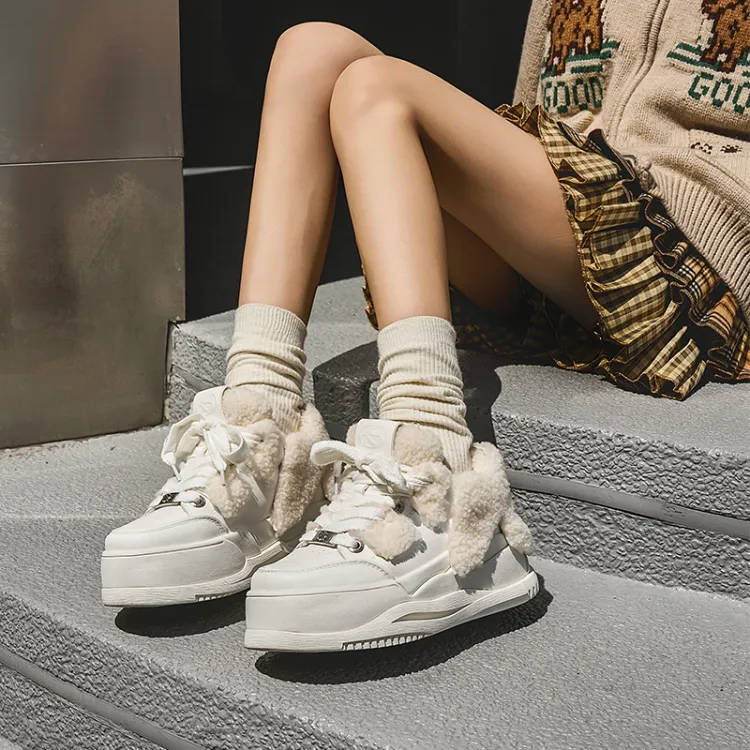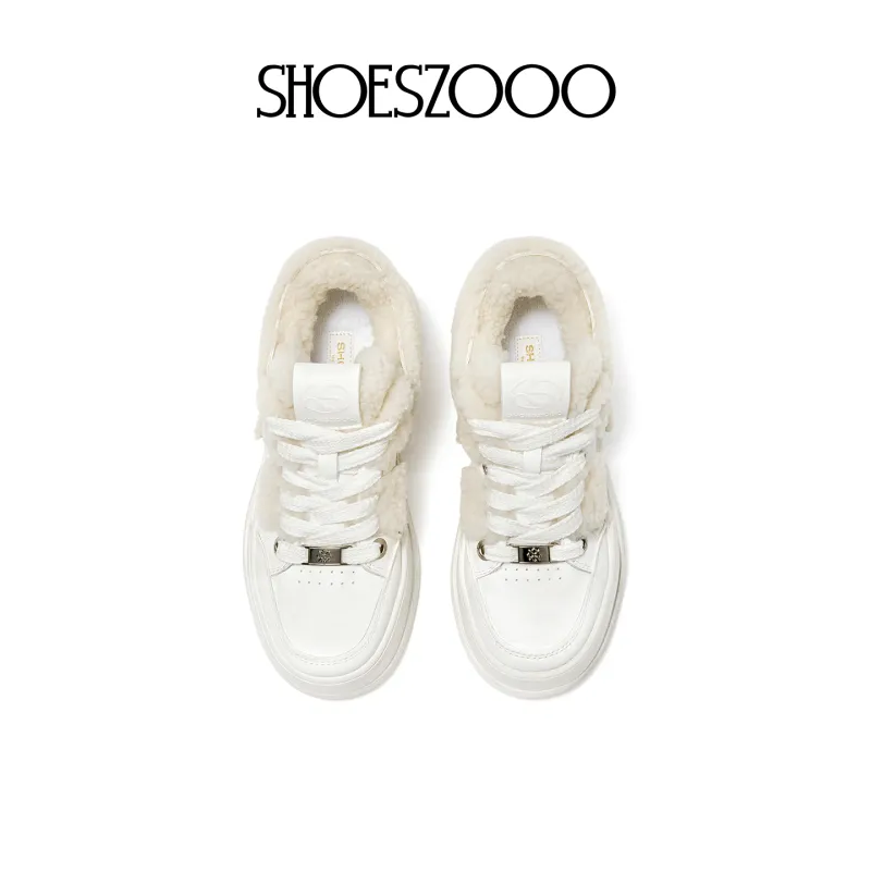 SHOESZOOO 트렌디 패딩화 보온 내마모성 미끄럼 방지 로우탑 겨울 스케이트보드화 여성 선셋 웜 화이트