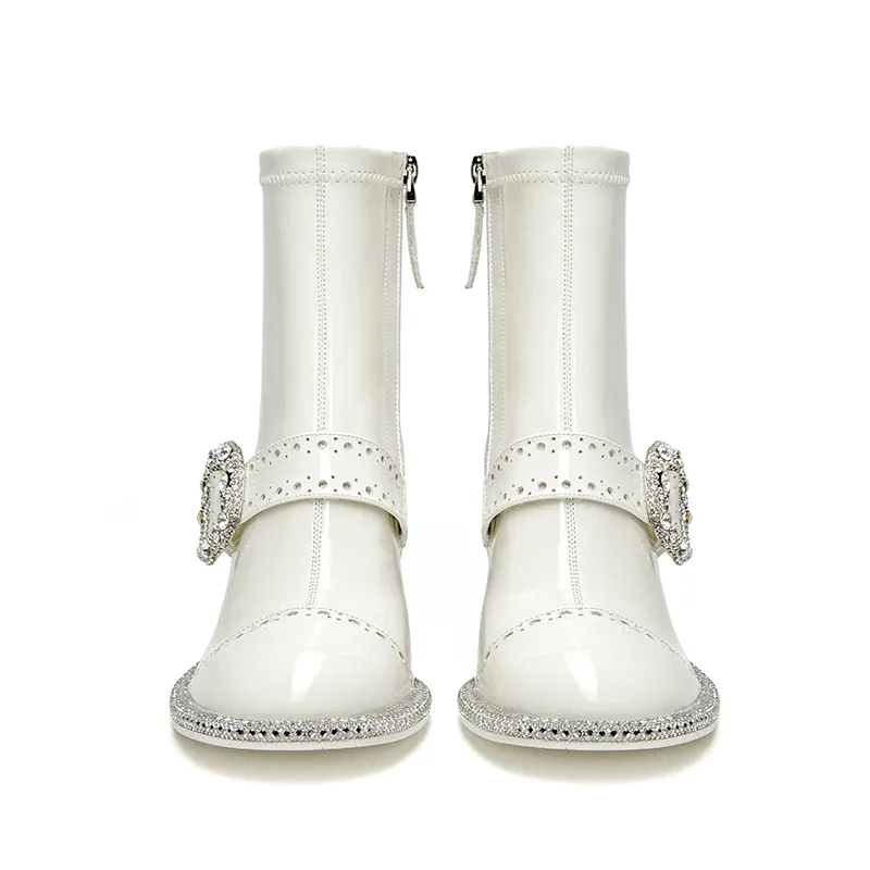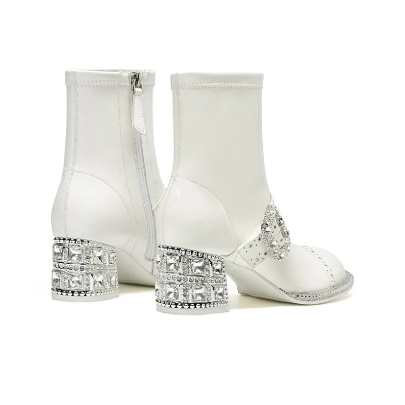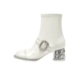 SHOESZOOO 스타일리시 하이힐 크루 앵클 부츠 6CM 여성 - POIZON