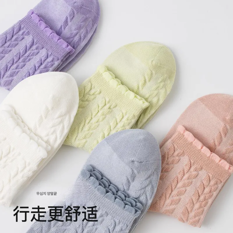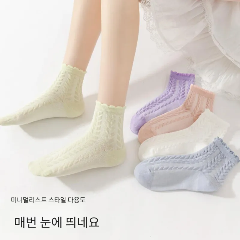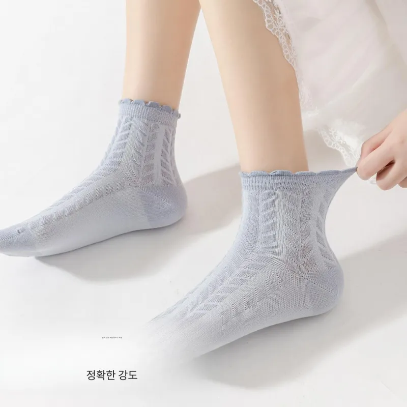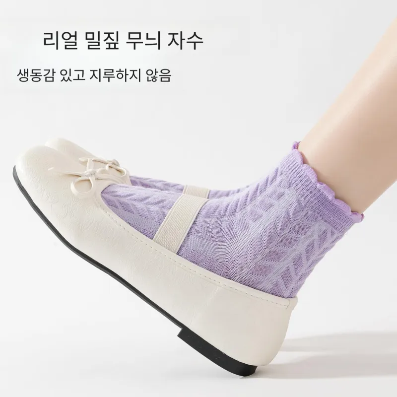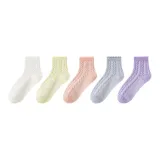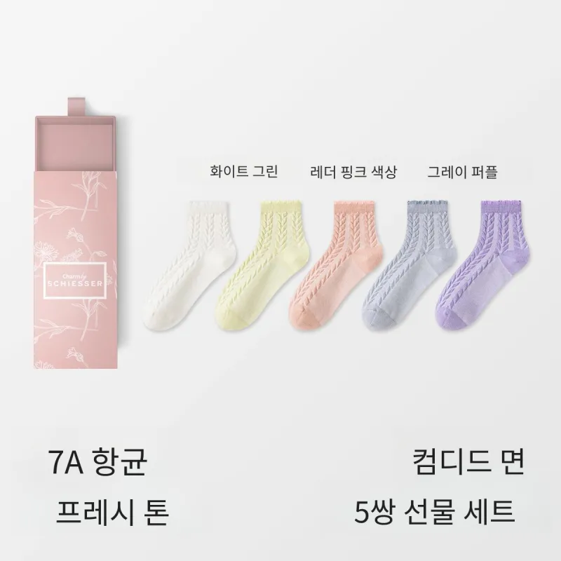 Shuya 그레이+퍼플+그린+레더 핑크+화이트 여성 크루 삭스