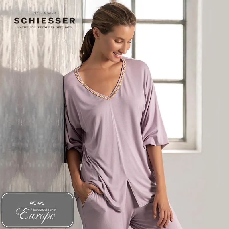 Shuya 그레이 퍼플 여성 파자마 세트 - POIZON
