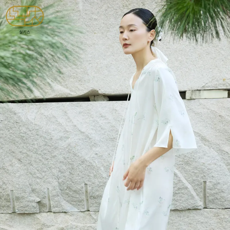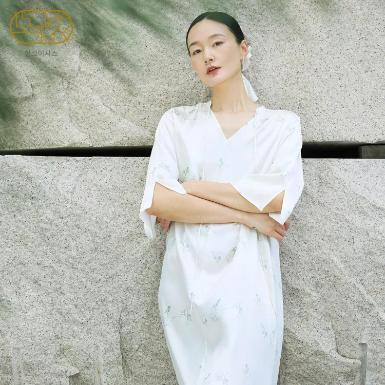 SILKISS 2025 가을 겨울 실크 나이트 가운 여성