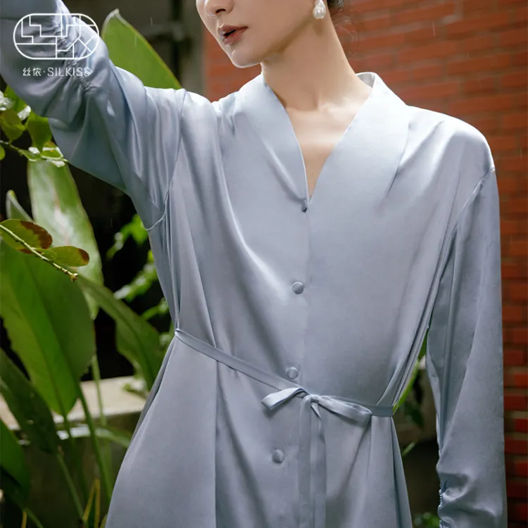 SILKISS 문 화이트 여성 나이트 가운 - POIZON