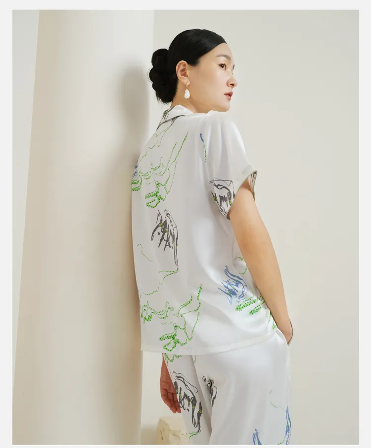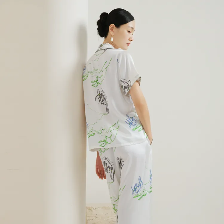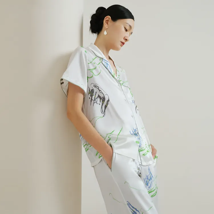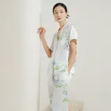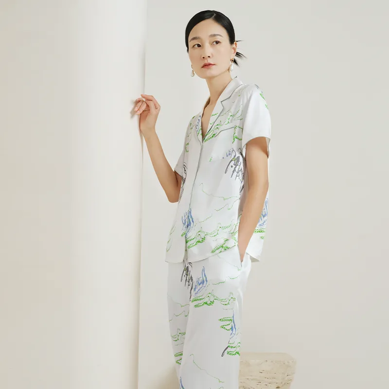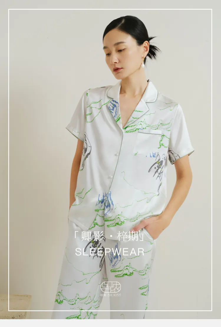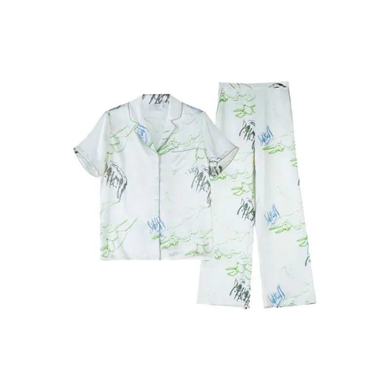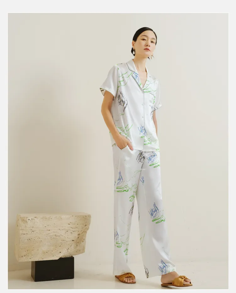SILKISS 그린 라인 풍경 여성 파자마 세트 - POIZON