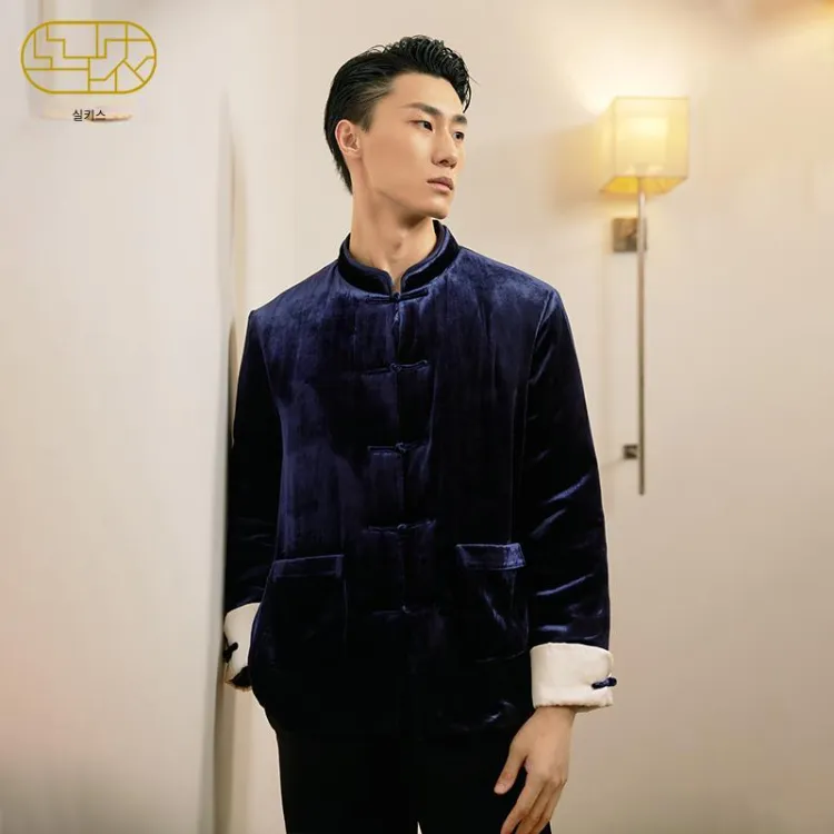 SILKISS 다크 블루 남성 파자마 상의 - POIZON
