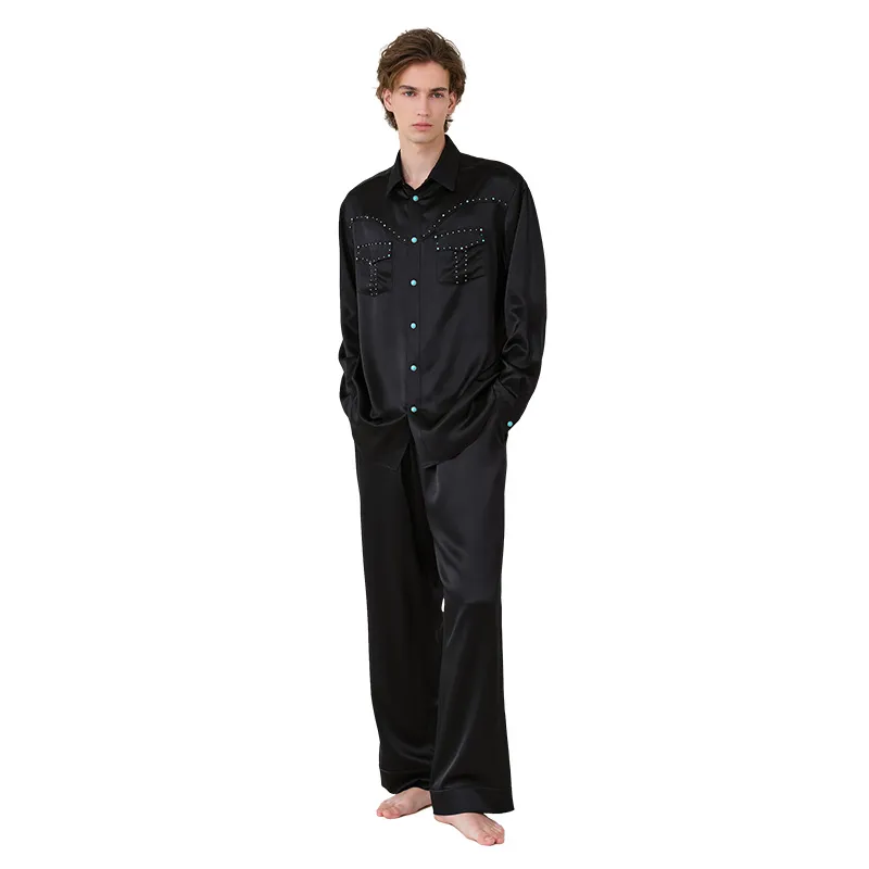 SILKY MIRACLE 스파클링 블랙 바지 남성 파자마 팬츠 - POIZON