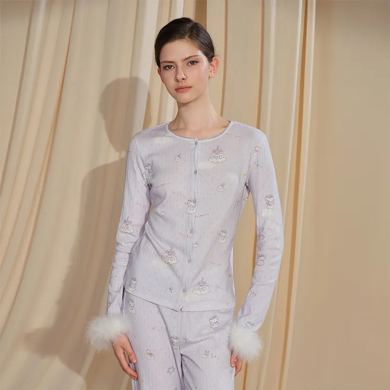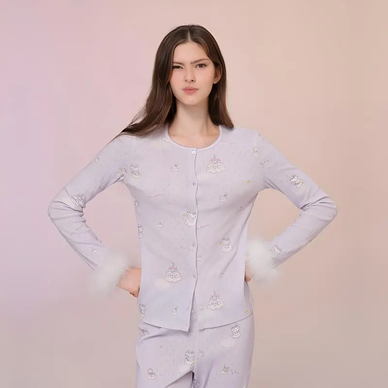 SILKY MIRACLE 핑크 퍼플 그라데이션 세트 여성 파자마 세트