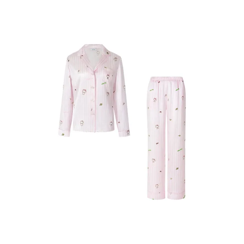 SILKY MIRACLE 테니스 스트라이프 패턴 헬로키티 핑크 세트 여성 파자마 세트 - POIZON
