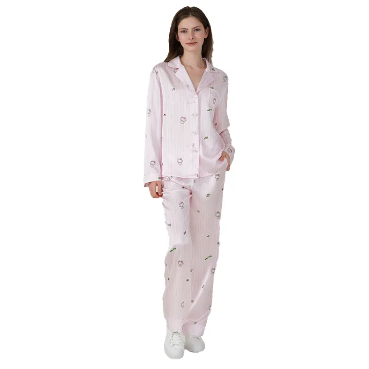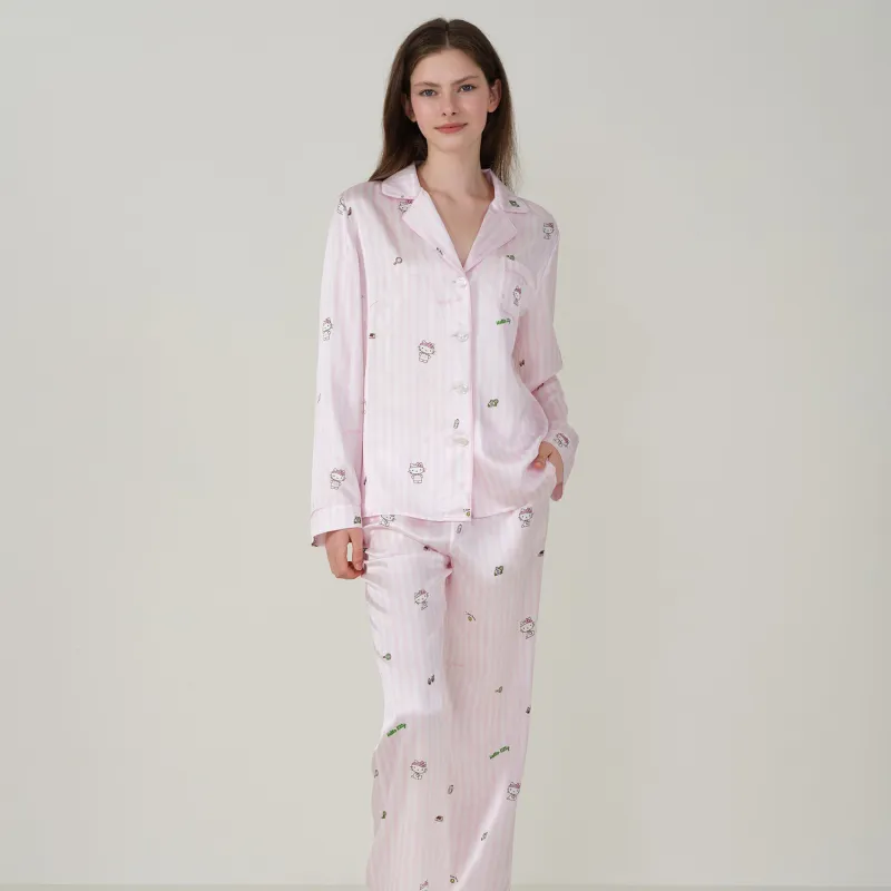 SILKY MIRACLE 테니스 스트라이프 패턴 헬로키티 핑크 세트 여성 파자마 세트