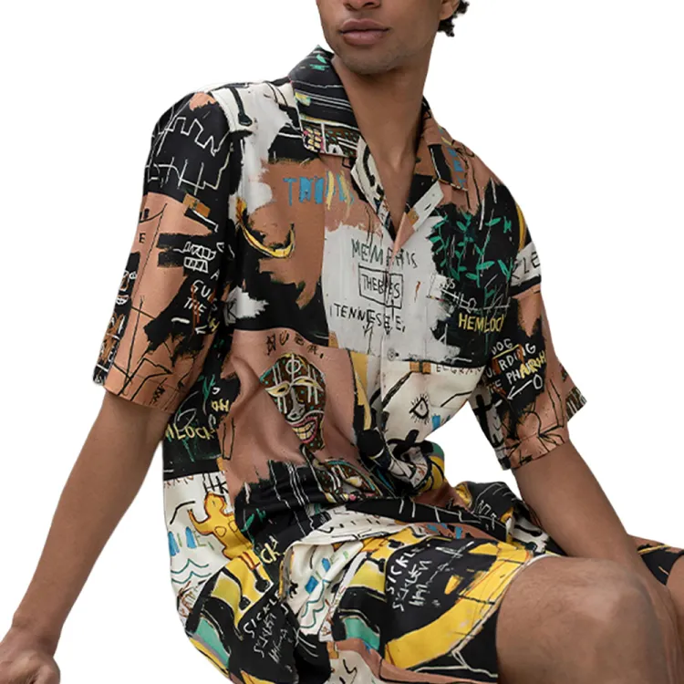 SILKY MIRACLE x Jean Michel Basquiat SS24 파자마 선물 세트 남녀공용 블랙 커피 - POIZON