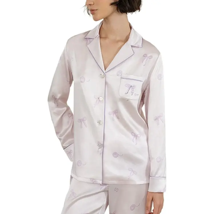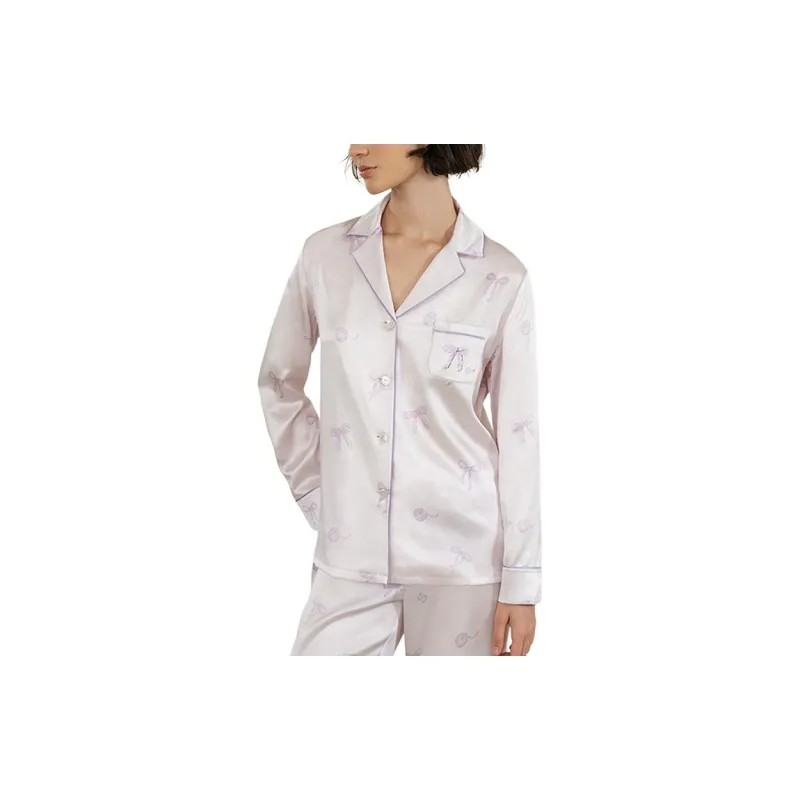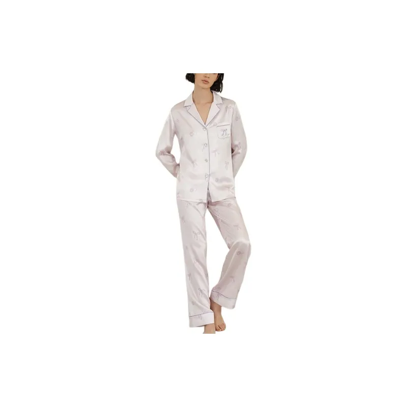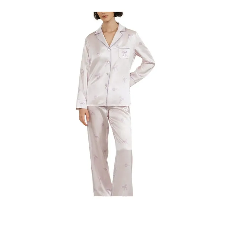 SILKY MIRACLE x YOYOKULALA FW24 파자마 세트 여성 리본 장식 스프레이 페인팅 - POIZON
