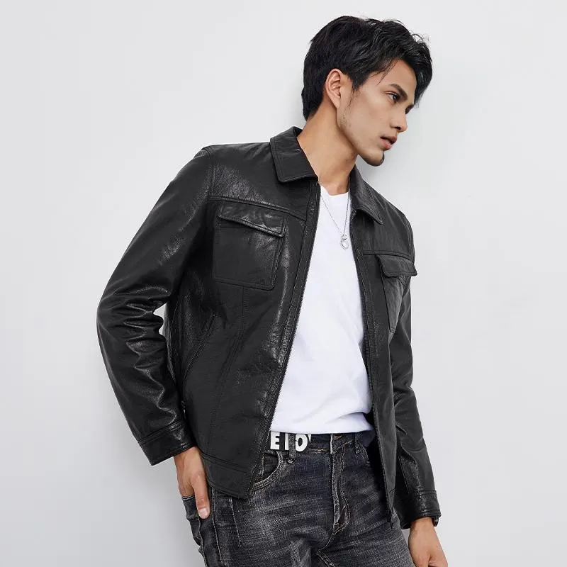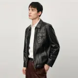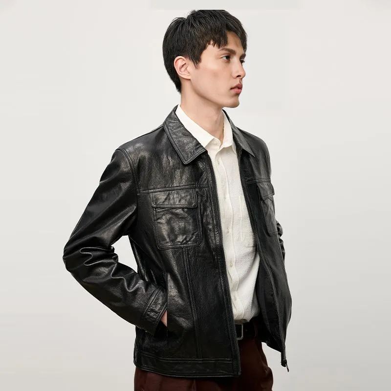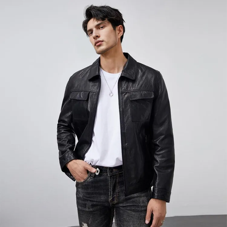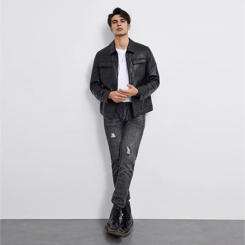 SINBOS 블랙 남성 가죽 자켓 - POIZON