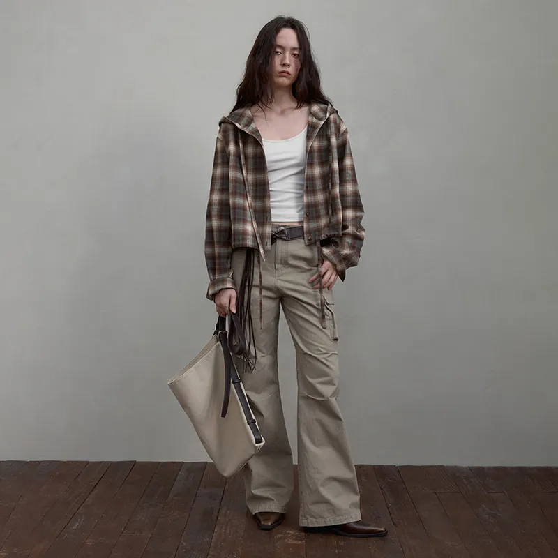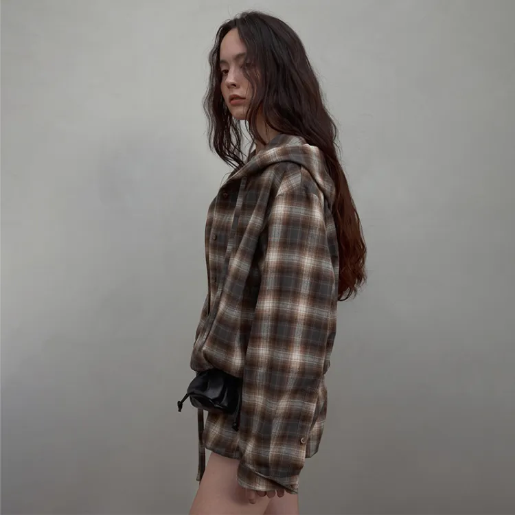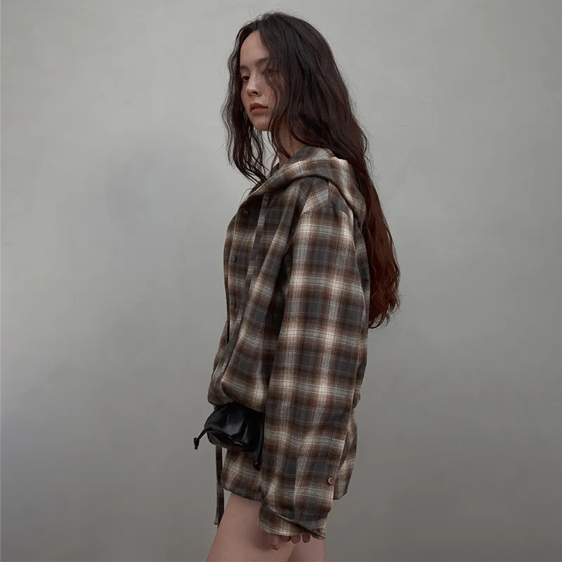 SINBOS 커피 화이트 체크 여성 셔츠 - POIZON