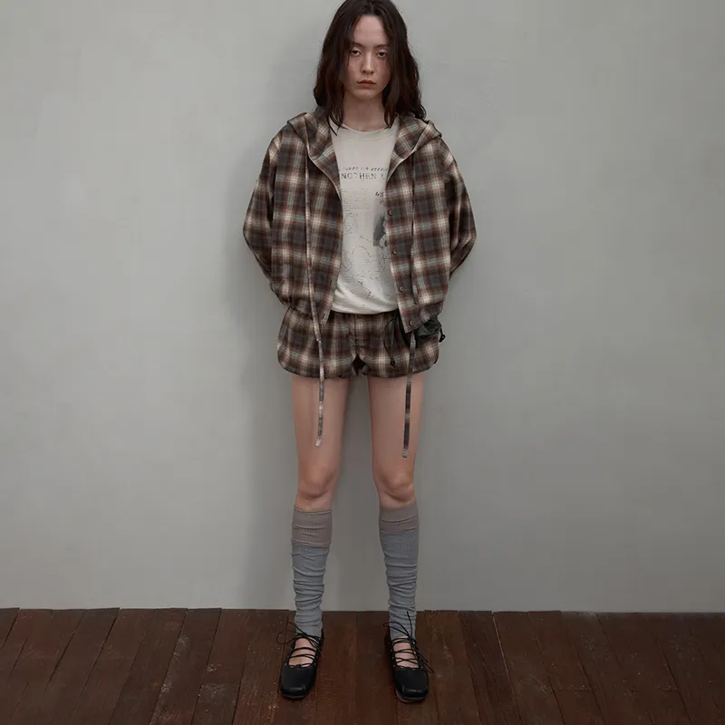 SINBOS 커피 화이트 체크 여성 셔츠