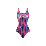 SISII LEE 원피스 수영복 여성 지오메트릭 블루 레드 패치워크