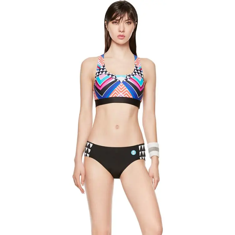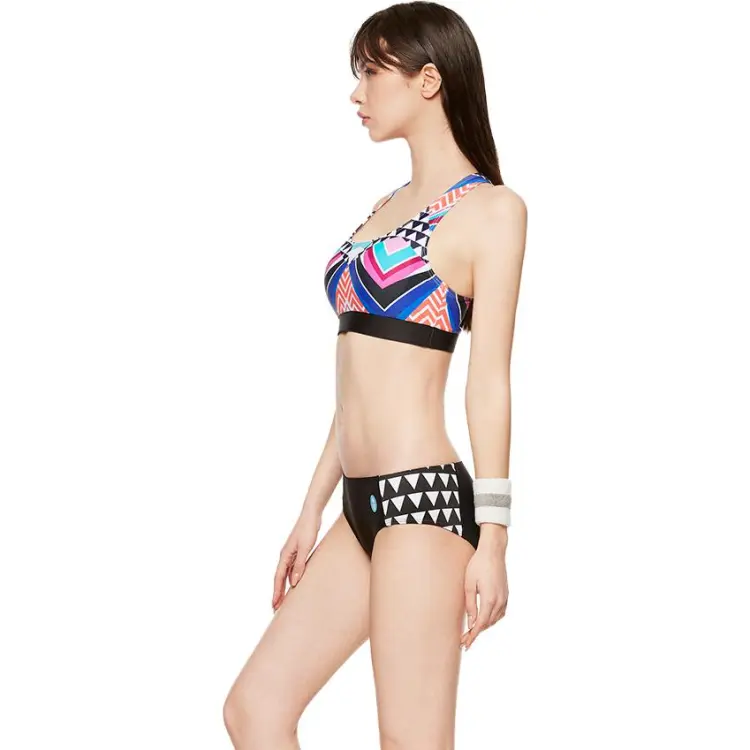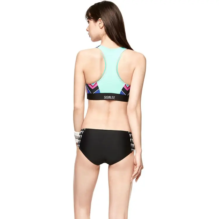 SISII LEE 다이내믹 스트라이프 패턴 여성 투피스 수영복