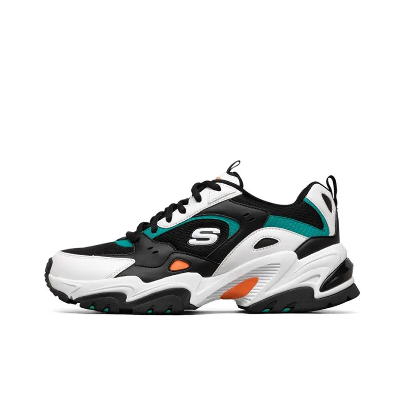 스케쳐스 스타미나 V2 쿠셔닝, 내마모성, 통기성이 좋은 로우탑 청키 스니커즈 남성 블랙 화이트 그린 오렌지