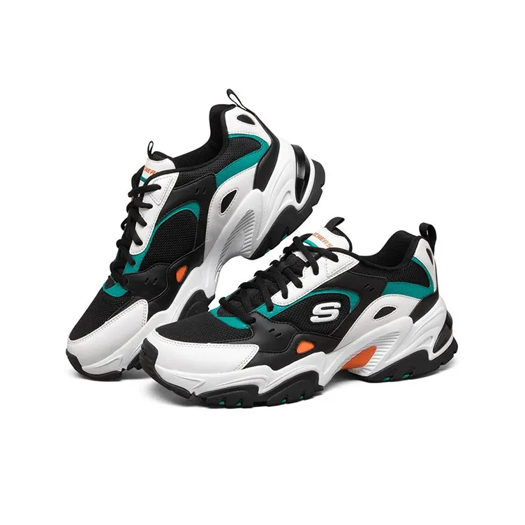 스케쳐스 스타미나 V2 쿠셔닝, 내마모성, 통기성이 좋은 로우탑 청키 스니커즈 남성 블랙 화이트 그린 오렌지 - POIZON
