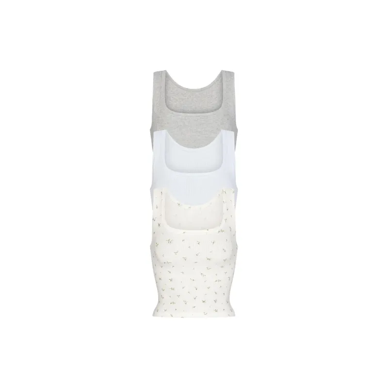 스킴스 웨딩 드레스 시리즈 면 리브 원단 탱크 3팩 탱크 탑 여성 3팩 세트 블루 ROSEBUD MULTI/블루 로즈 버드 배색