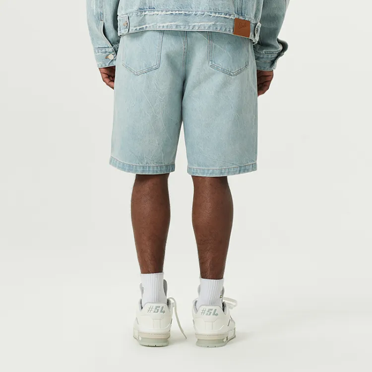 Slamble 워시드 데님 남녀공용 데님 반바지 - POIZON