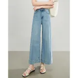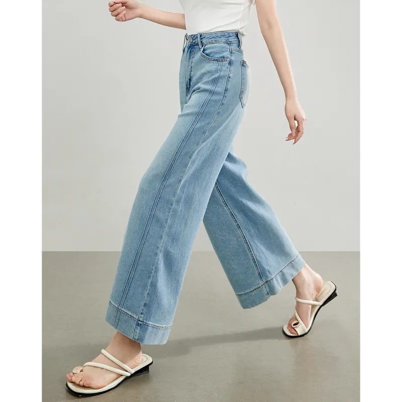 SLLSKY 워시드 데님 블루 여성 청바지 - POIZON