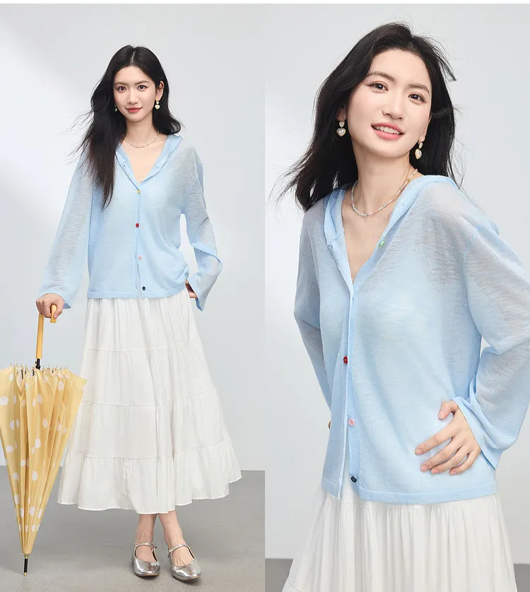 SLLSKY 아이스 블루 여성 니트웨어 - POIZON