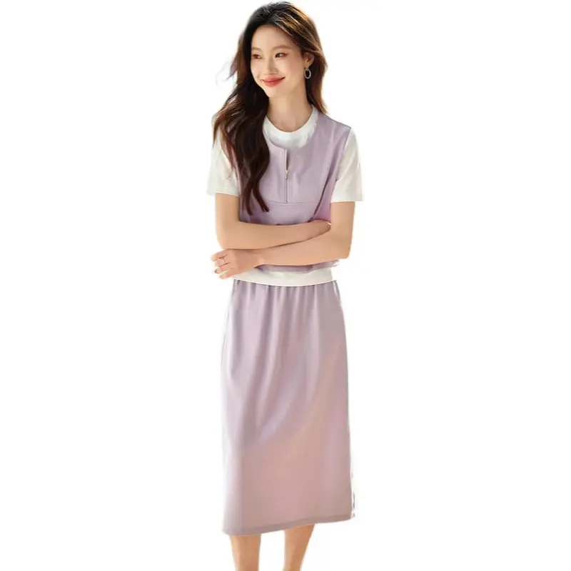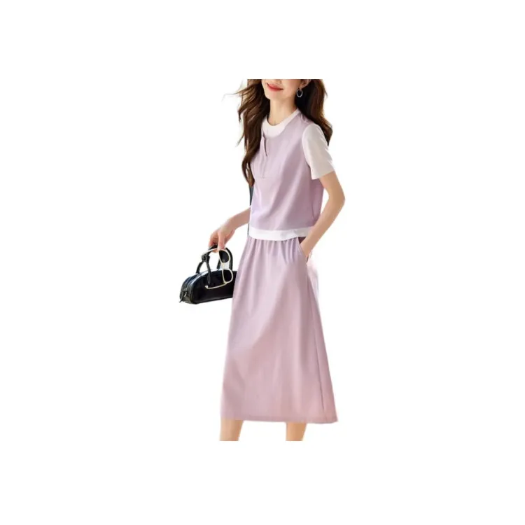 SLLSKY 히비스커스 퍼플 여성 투피스 스커트 세트 - POIZON