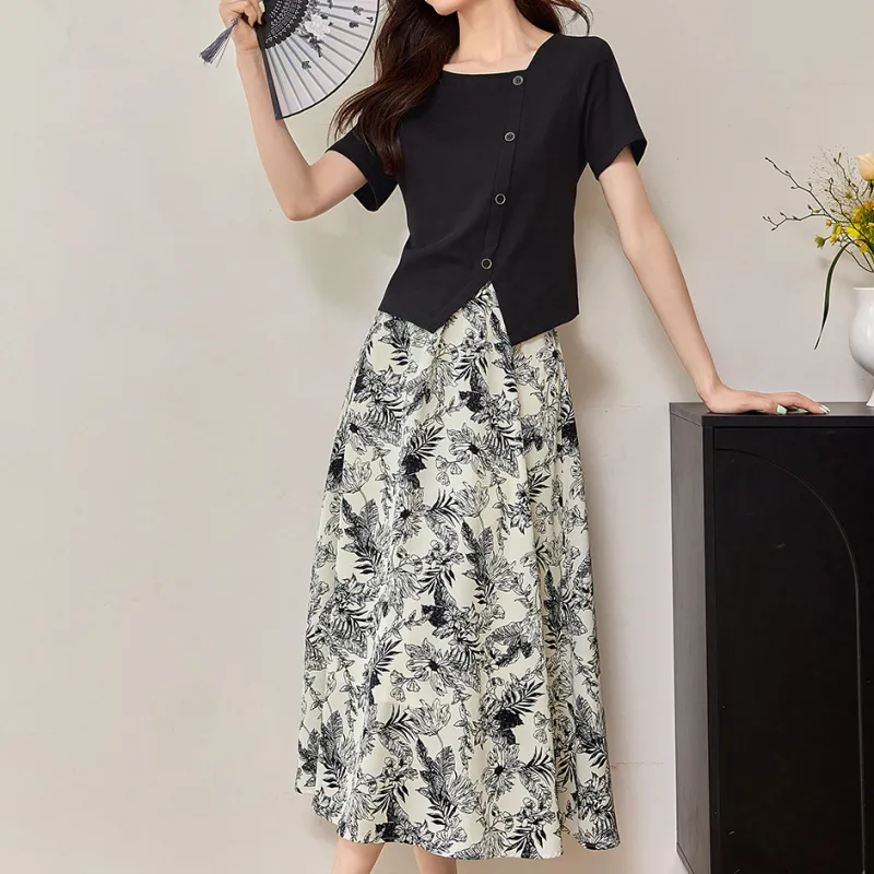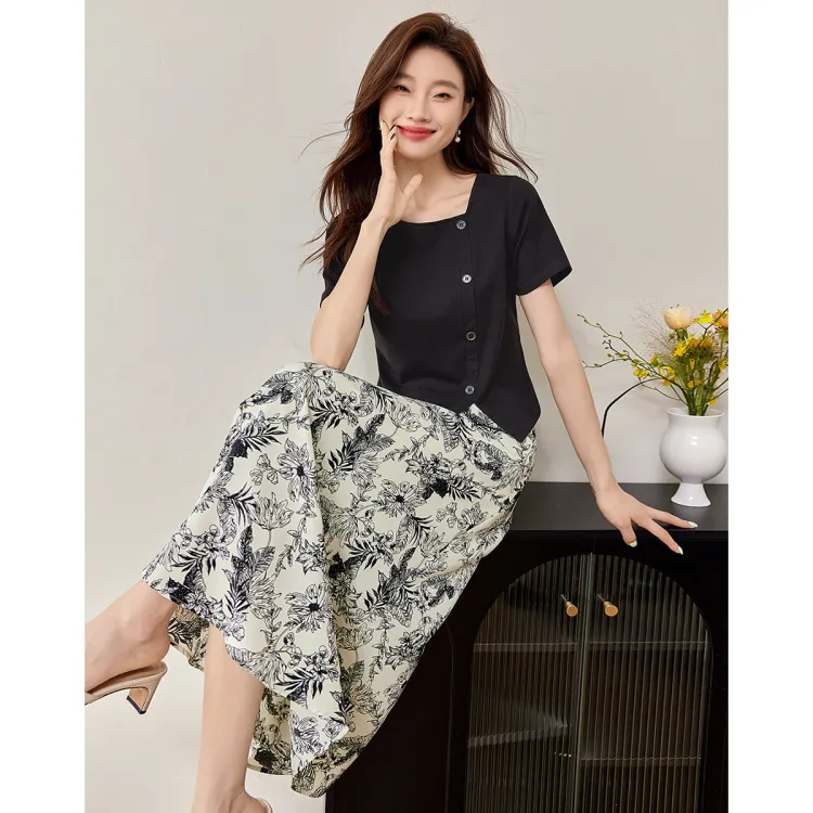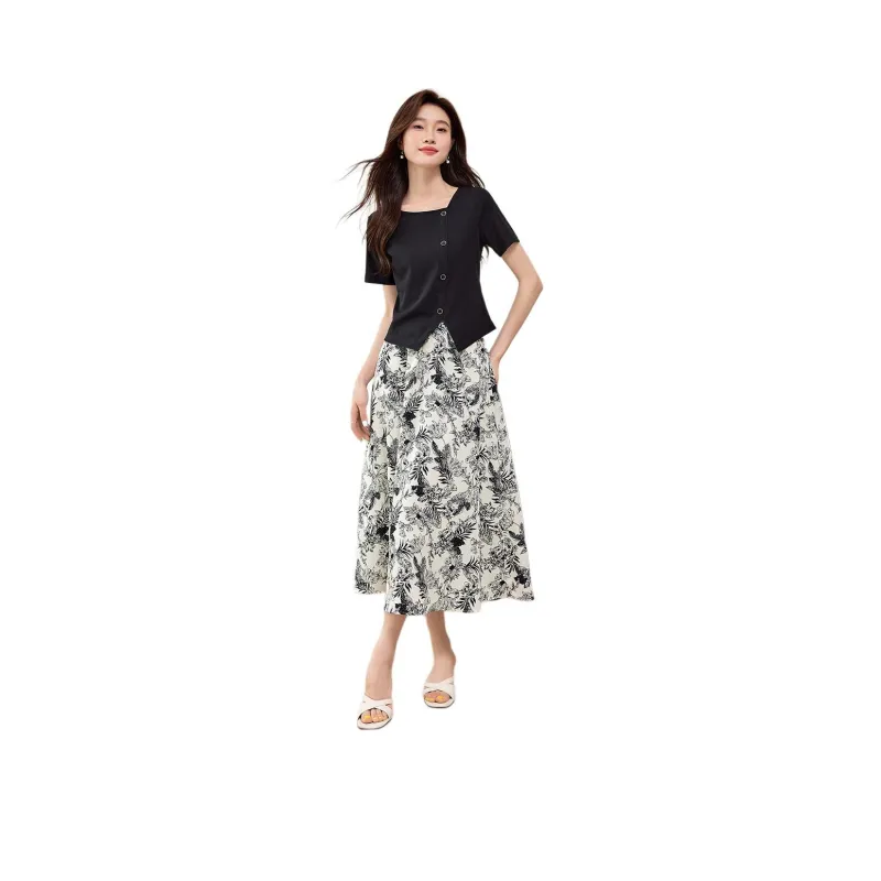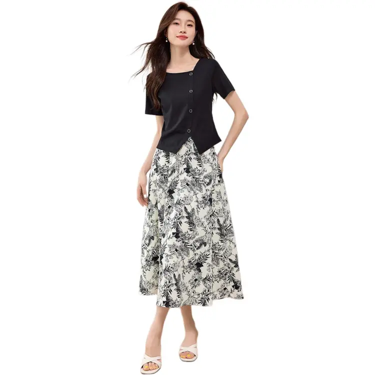 SLLSKY 미드나이트 블랙 여성 투피스 스커트 세트 - POIZON