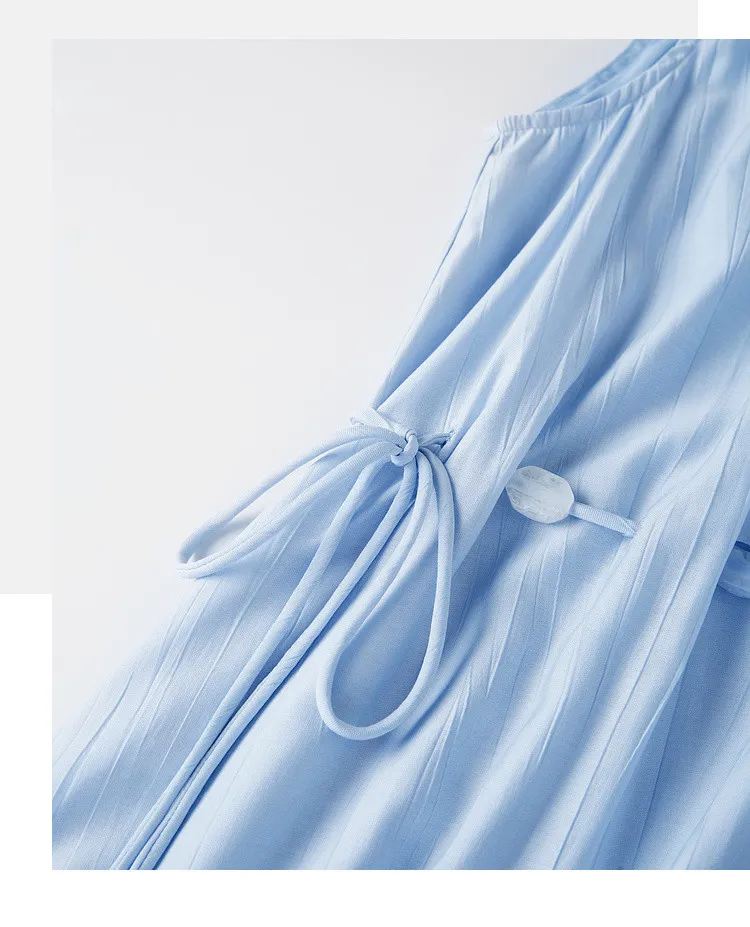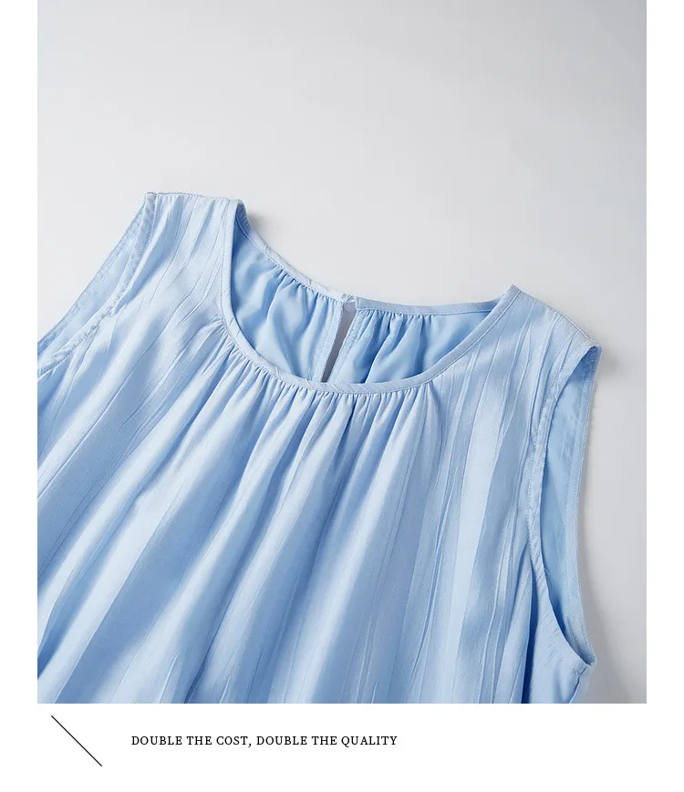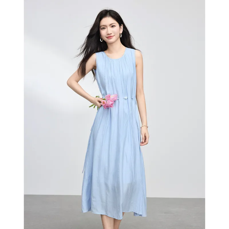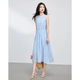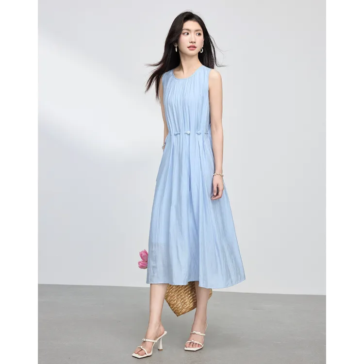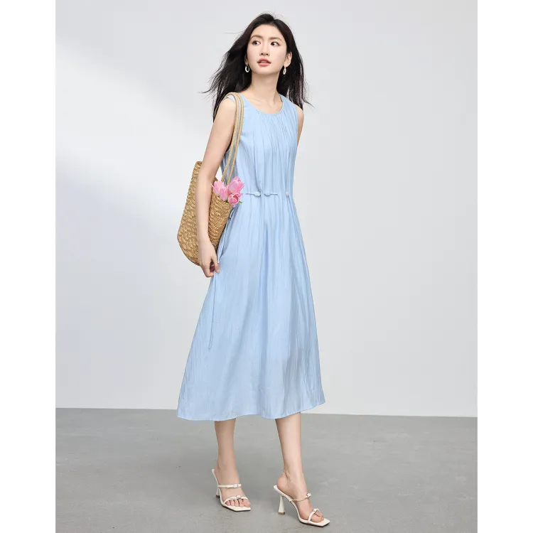 SLLSKY 화창한 날씨 블루 여성 민소매 원피스