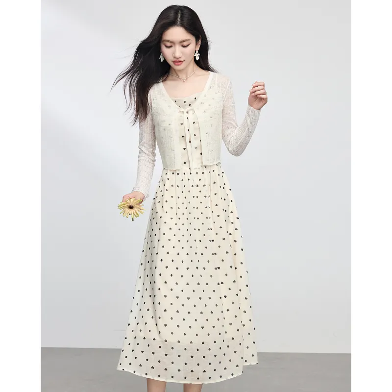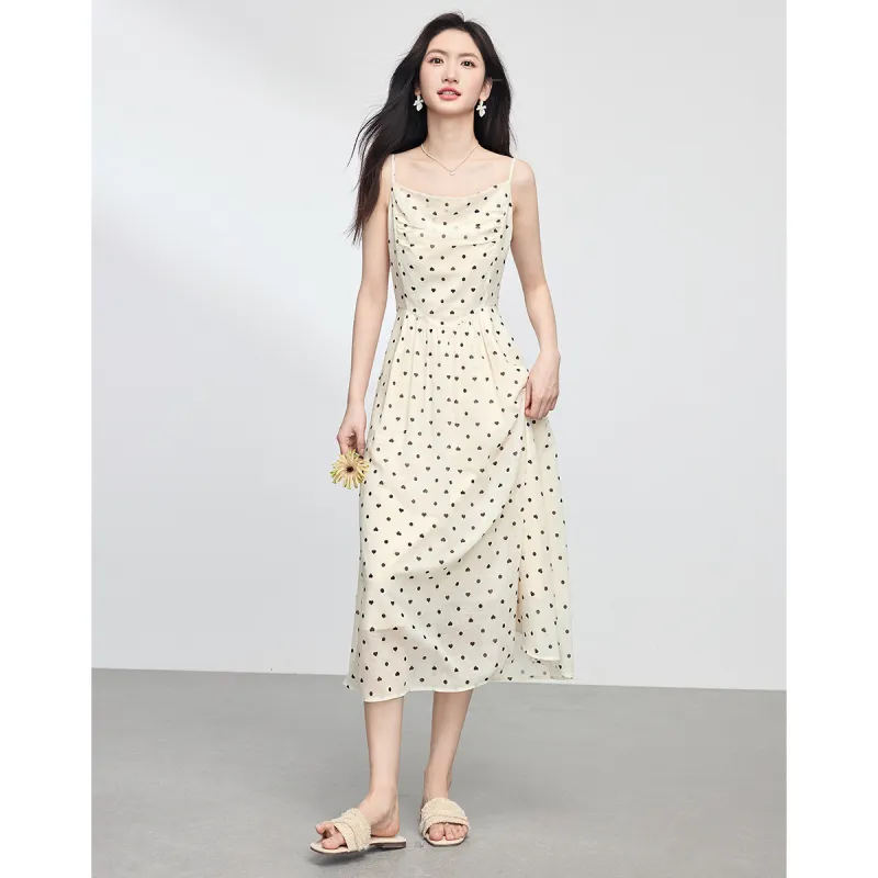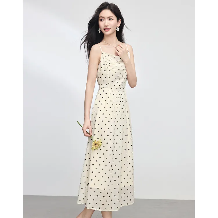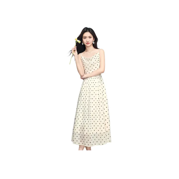 SLLSKY 애프리콧+블랙 플로럴 여성 슬립 원피스 - POIZON