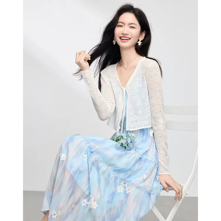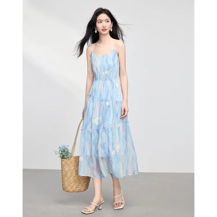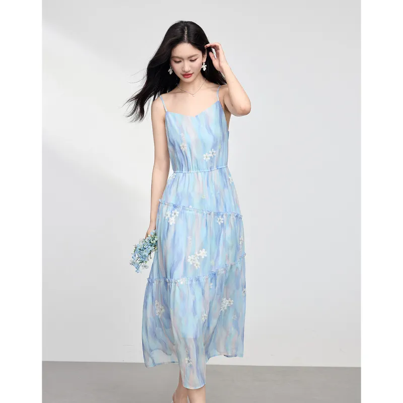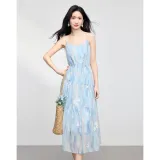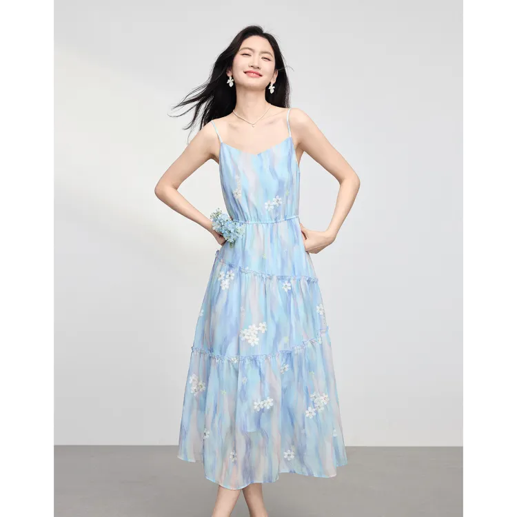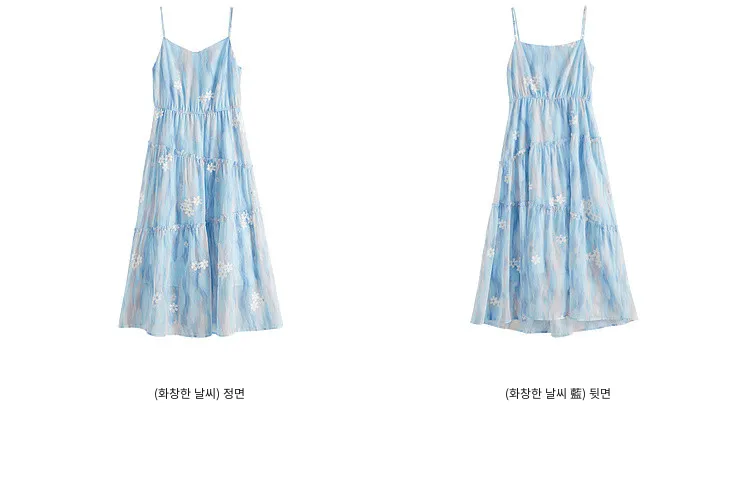 SLLSKY 화창한 날씨 블루 여성 슬립 원피스 - POIZON