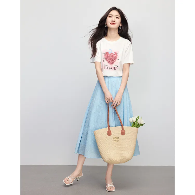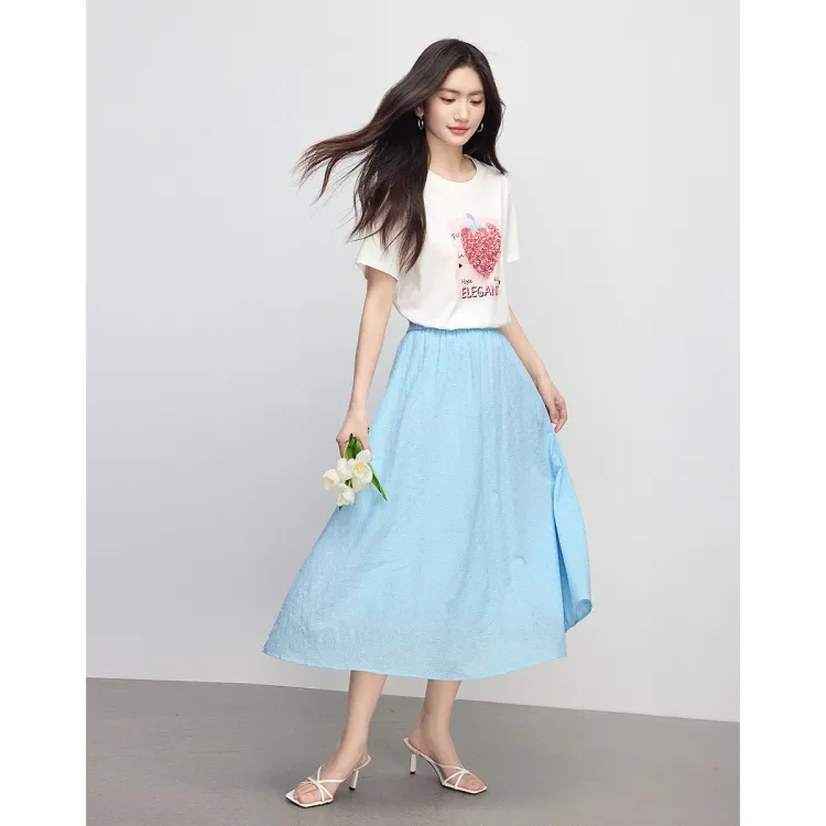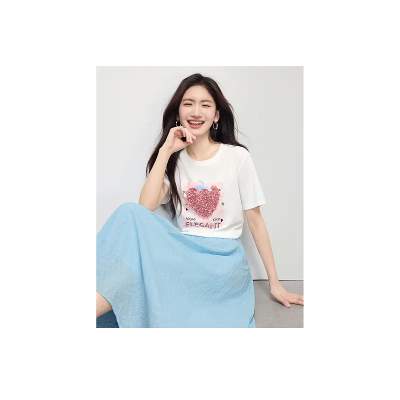티셔츠 원단: 72.4% 면, 27.6% 폴리에스터 스커트 주요 소재: 100% 순면 안감: 100% 폴리에스터