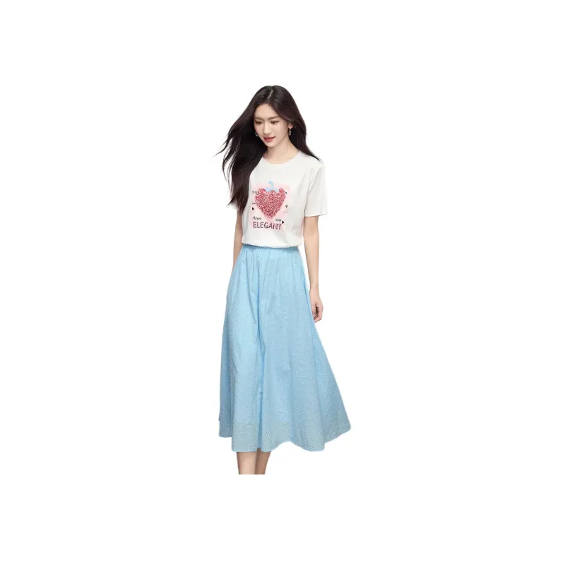 SLLSKY 크레센트 화이트 여성 투피스 스커트 세트 - POIZON