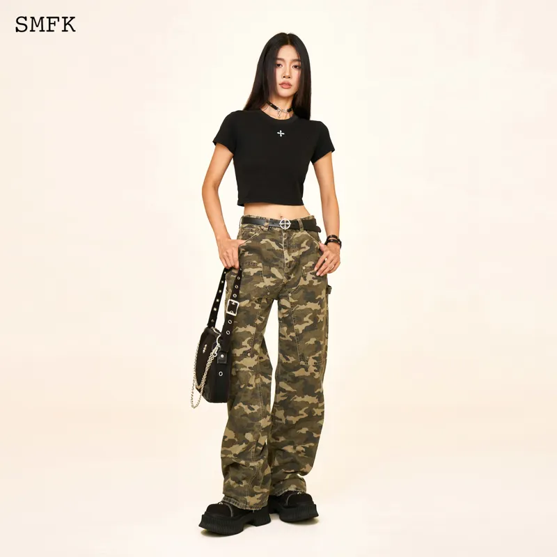 SMFK 와일드 월드 와일드 월드 시리즈 카고 바지 여성 그린 카무플라주 - POIZON