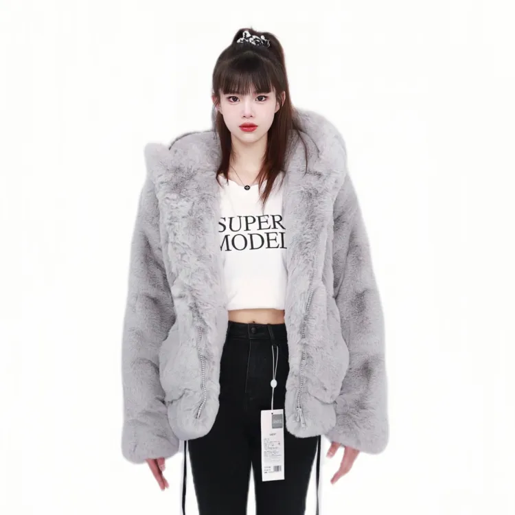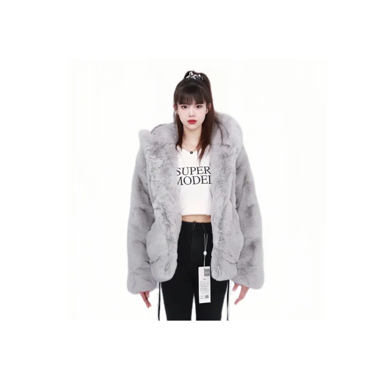 SMFK X Wonderland 실버 그레이 여성 크롭 코트 - POIZON
