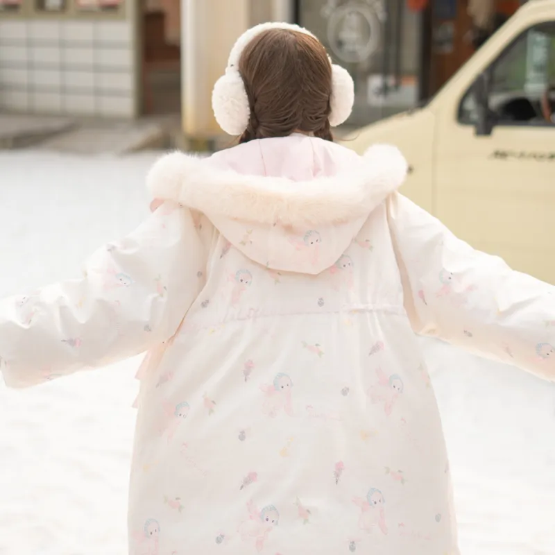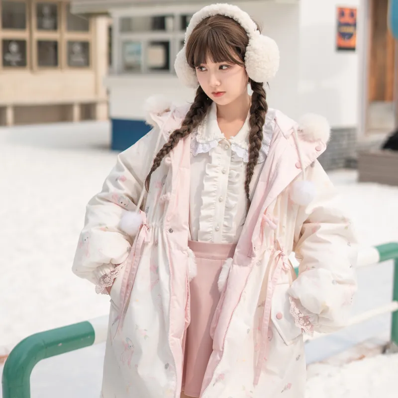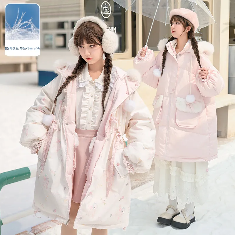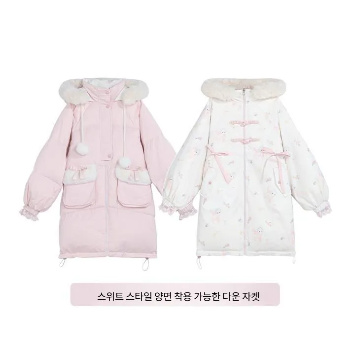 SNBL 핑크 화이트 양면 여성 다운 재킷