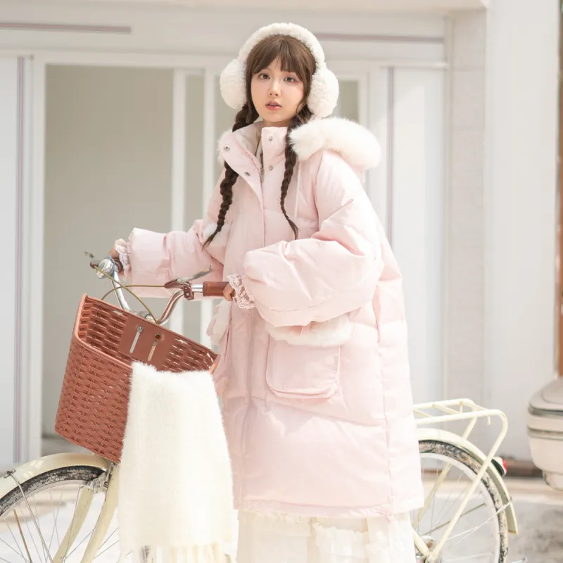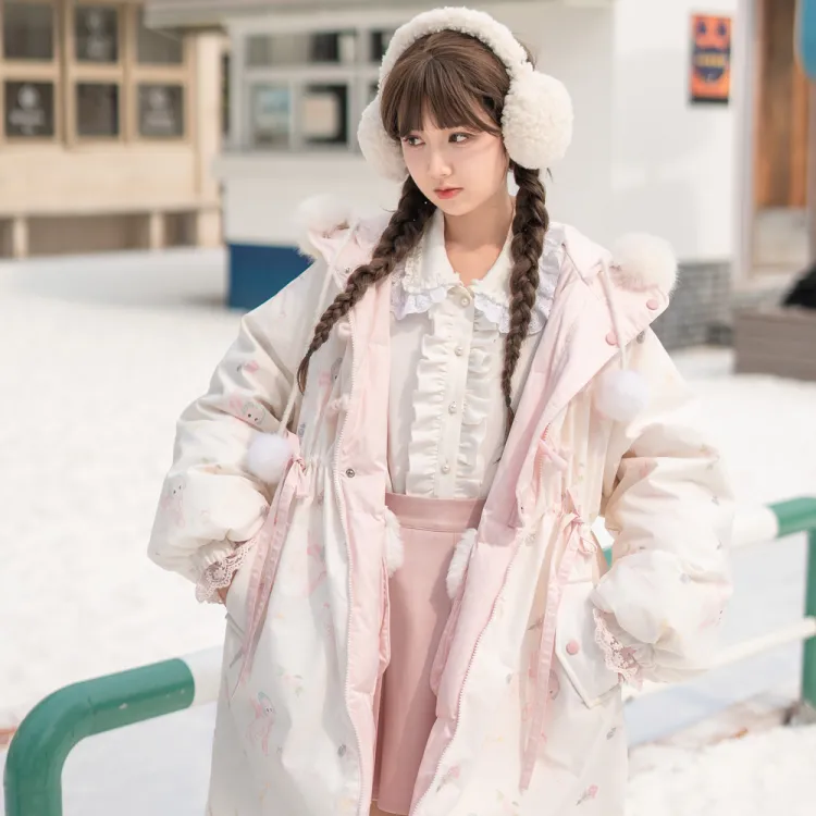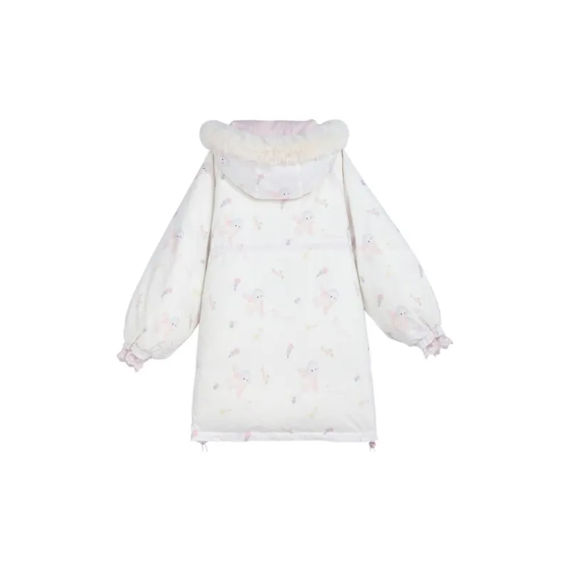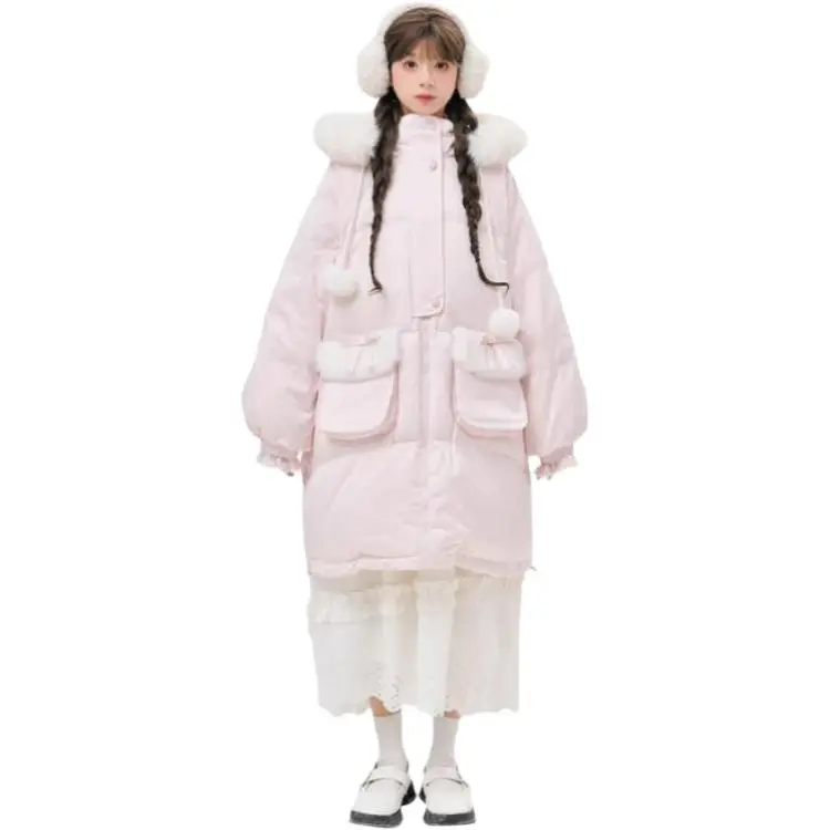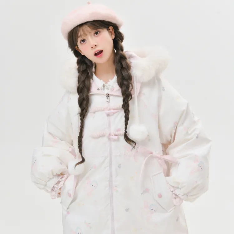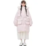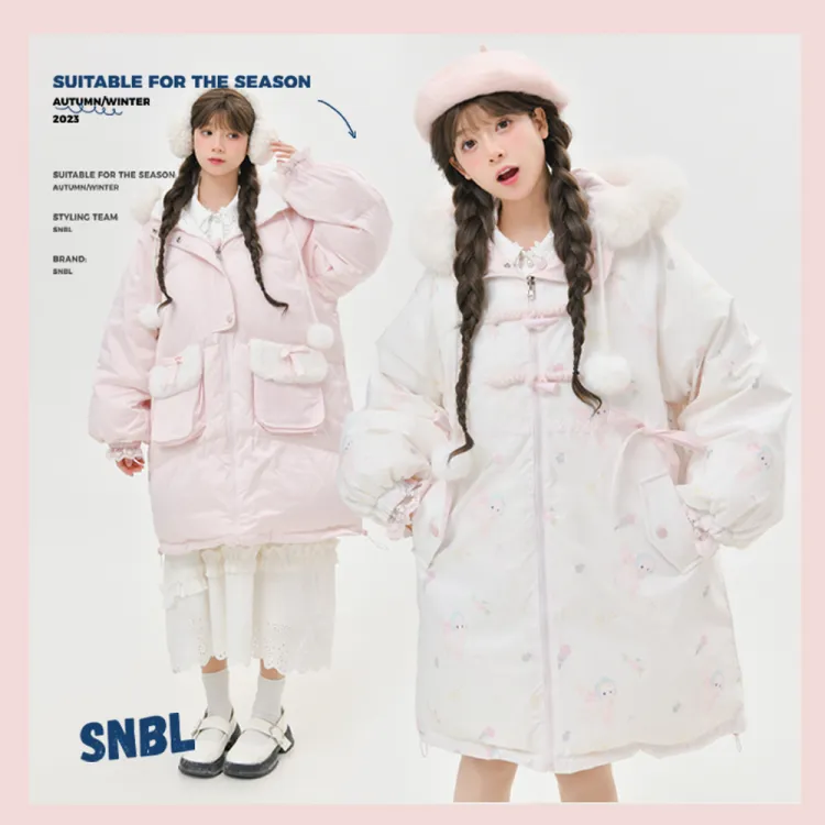 SNBL 핑크 화이트 양면 여성 다운 재킷 - POIZON