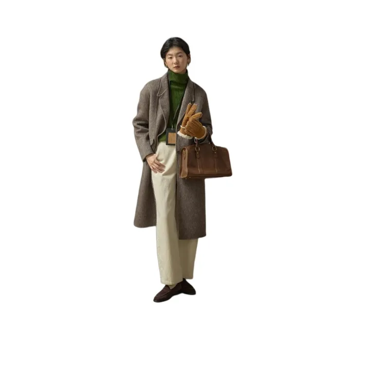 원단 성분: 90.7% 양모, 7.5% 낙타털, 1.8% 낙타털 트리밍 성분: 51.8% 폴리에스터 비스코스, 48.2% 기타