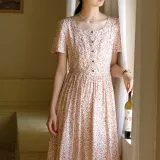 SOLIGHTER 애쉬 파우더 여성 반팔 원피스 - POIZON