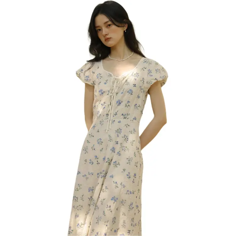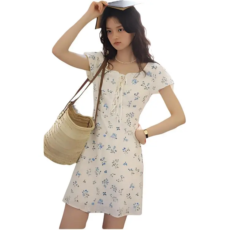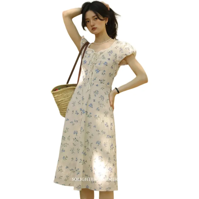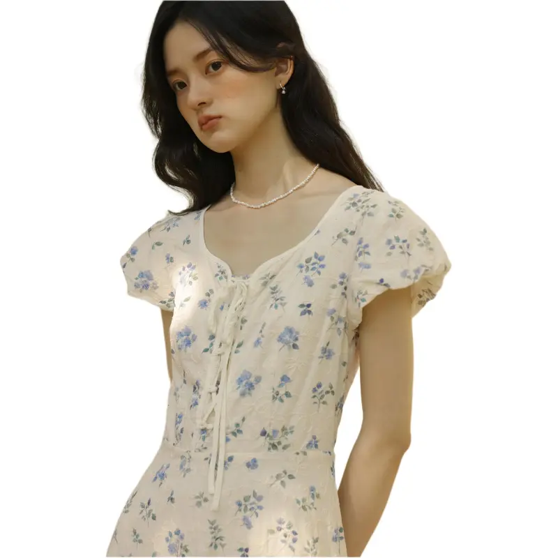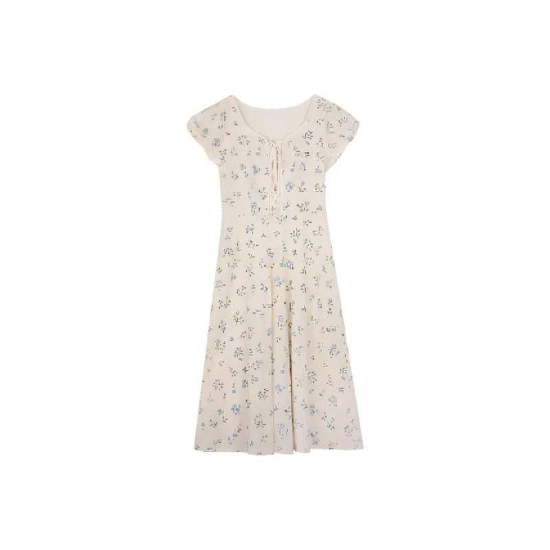SOLIGHTER 반팔 원피스 여성 씨 솔트 블루 프린팅 - POIZON