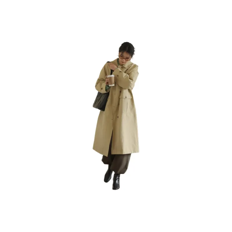 SOLIGHTER 옐로우 카키 여성 트렌치 코트 - POIZON