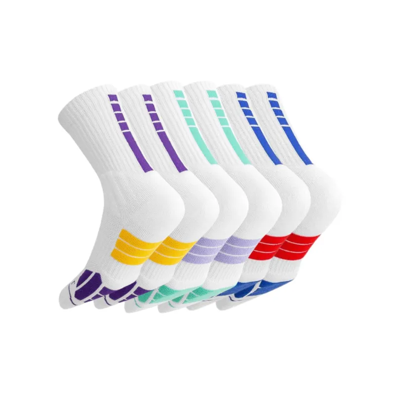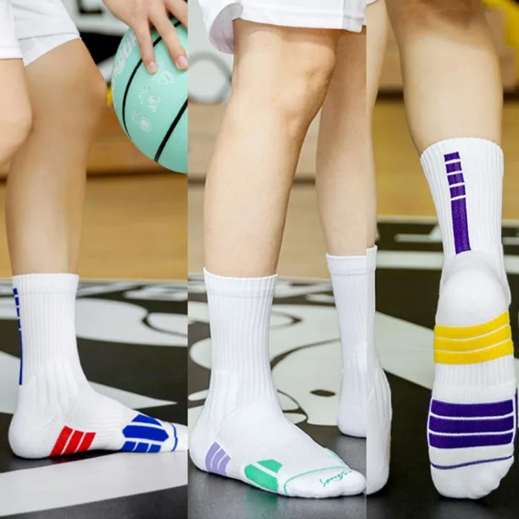 3팩 세트, Chufeng 리프레싱 농구 양말 [화이트 퍼플 옐로우 + 화이트 핑크 블루]