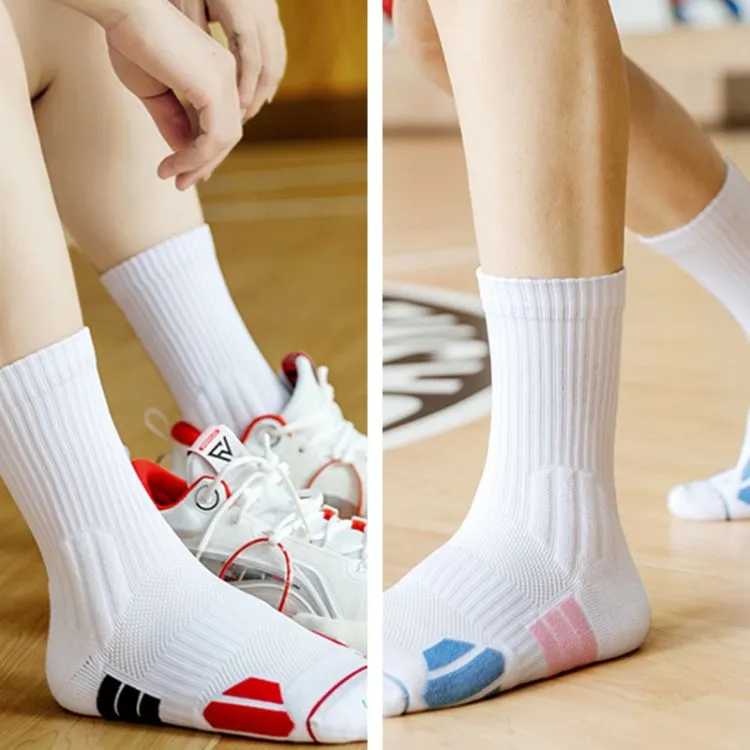 3팩 세트, Chufeng 리프레싱 농구 양말 [화이트 핑크 블루 + 화이트 블랙 레드]