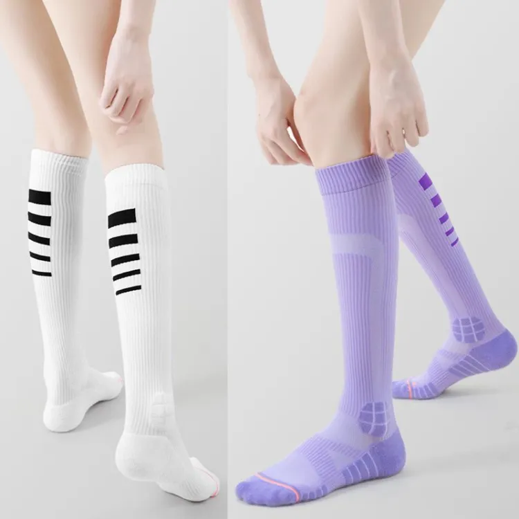 화이트+퍼플 프로페셔널 스포츠 점핑 운동 압박 양말 [2쌍 2팩 세트]